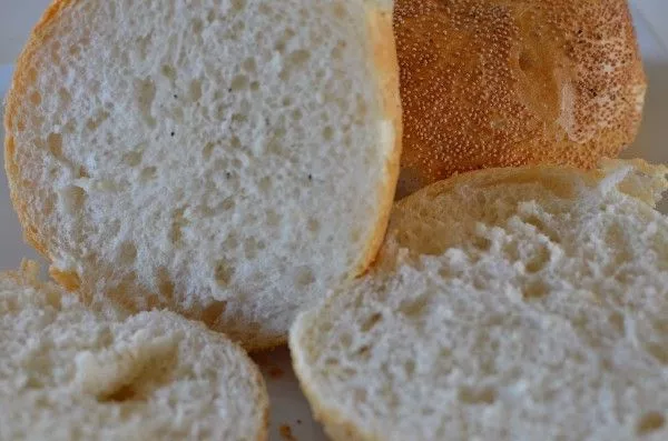 - Pensel med vand og dyp rundstykkerne i enten hvid- eller blå birkes, sesam eller hvad du nu har lyst til. Sættes på en plade – gerne en hulplade/hul bageplade da det fordeler varme og damp bedre.
