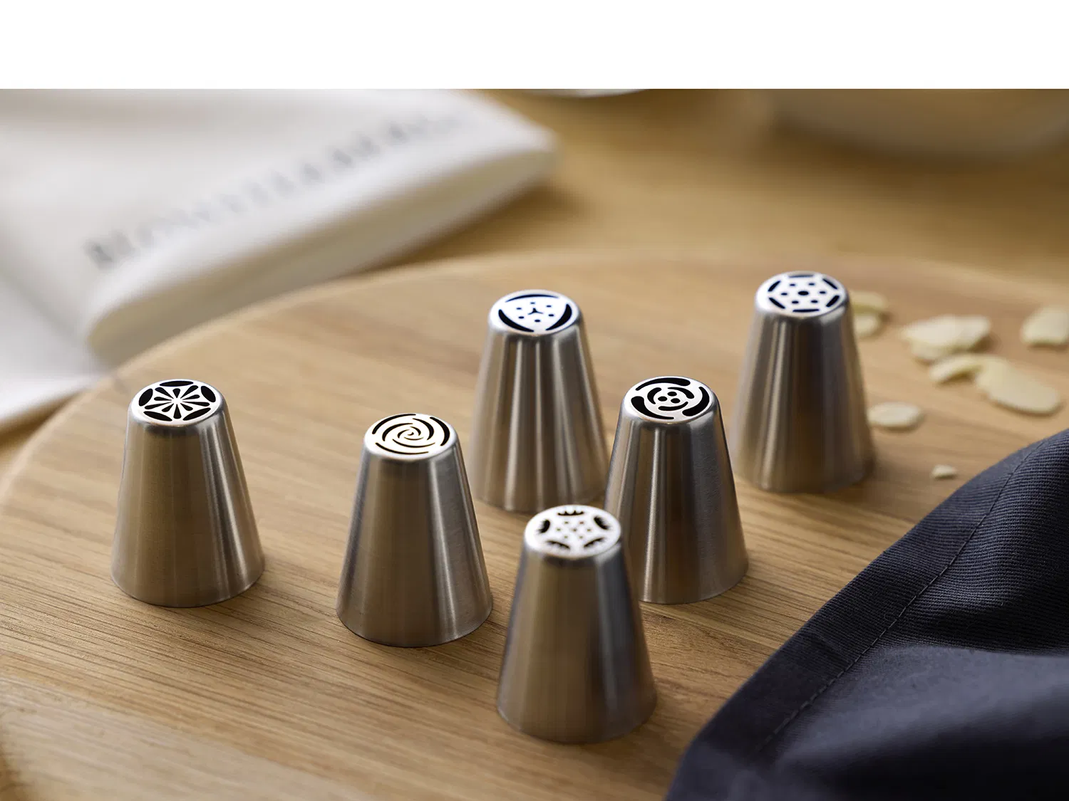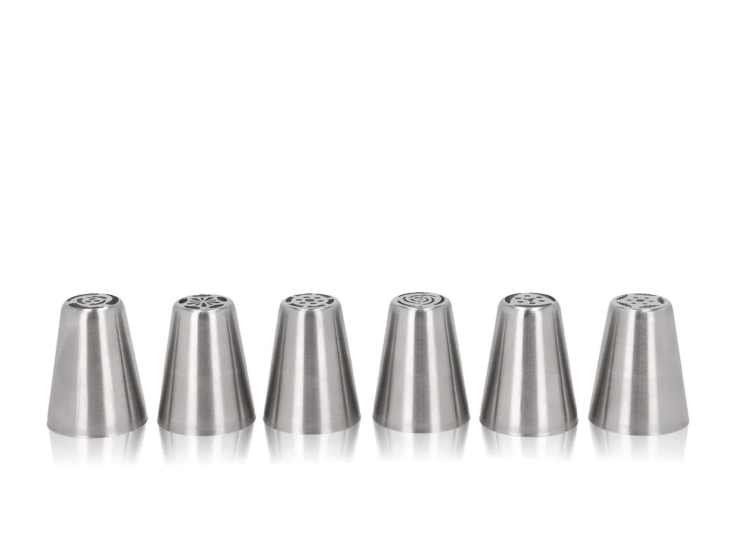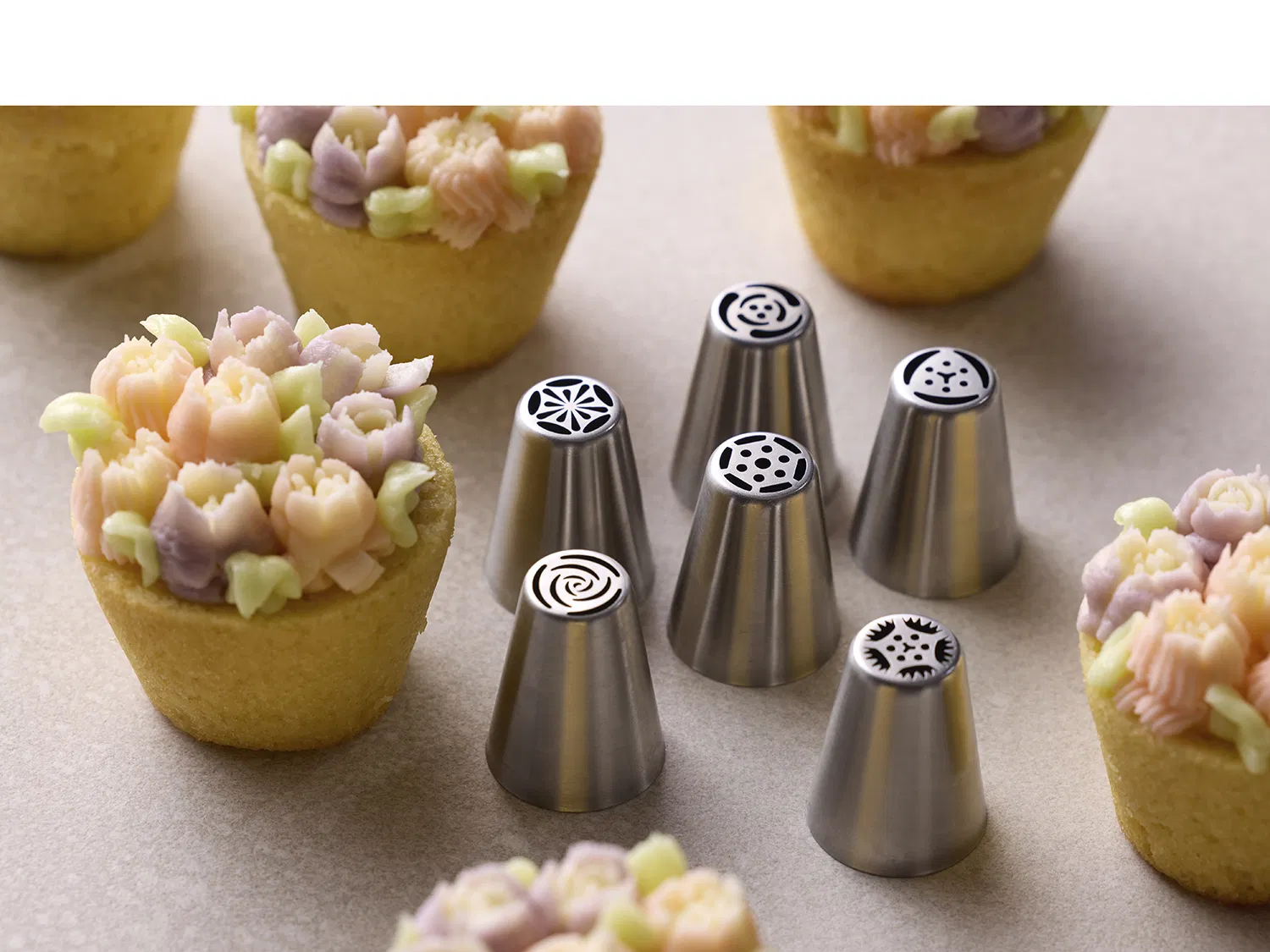 Tyllset med 6 tyllar för att enkelt göra blommor i smörkräm och liknande. Kallas även Russian nozzles.