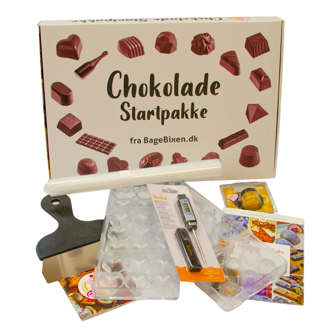I de medföljande broschyrerna på danska finns instruktioner för temperering och formning samt förslag på olika fyllningar.