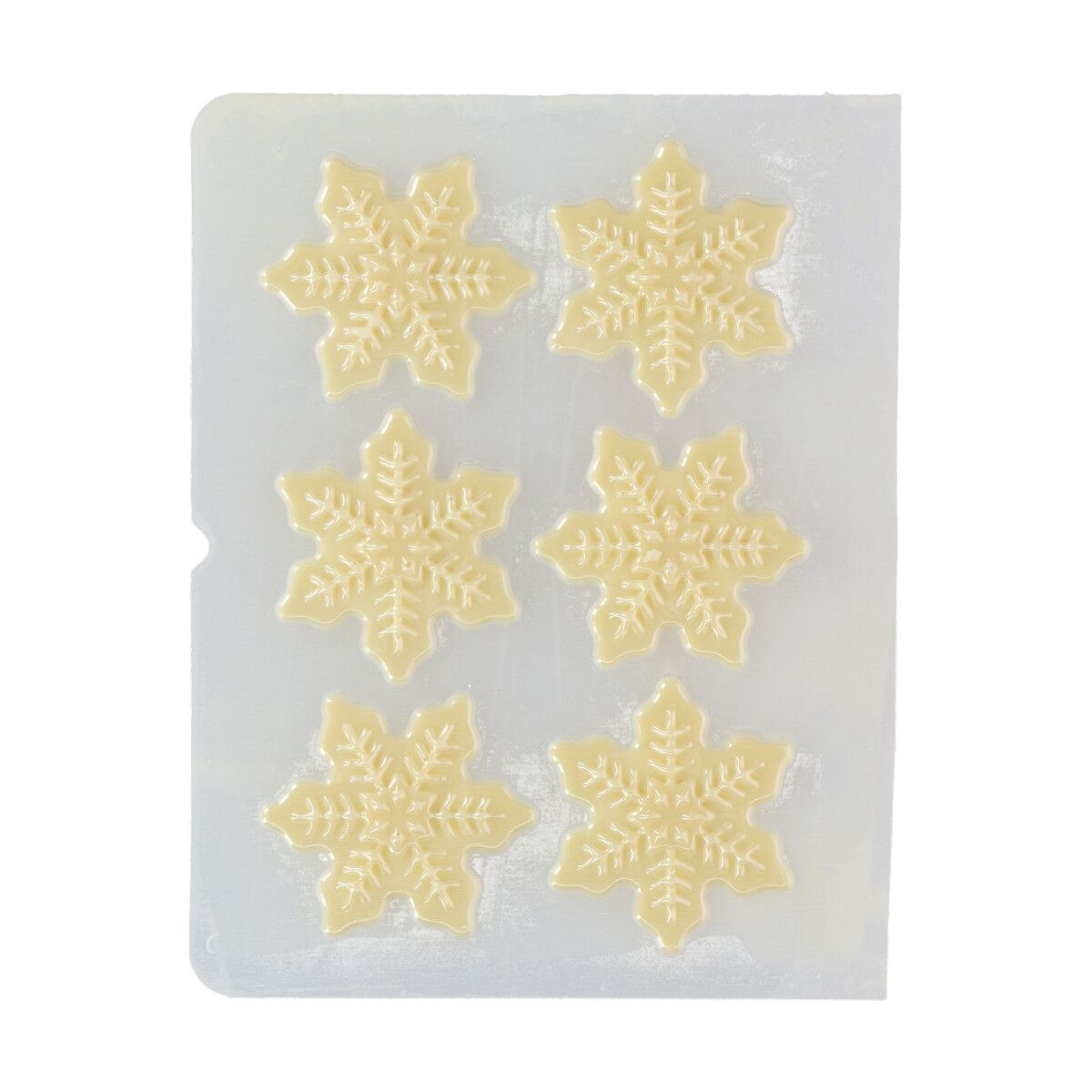 Setet innehåller 6 snöflinga chokladdekorationer som kommer att se vackra ut på dina hemgjorda kakor och cupcakes.