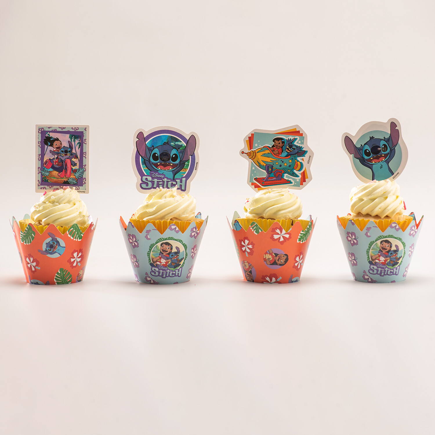 Ge dina cupcakes ett sött och festligt uttryck med detta dekorationskit i Stitch-tema – perfekt till barnkalas och temafester.