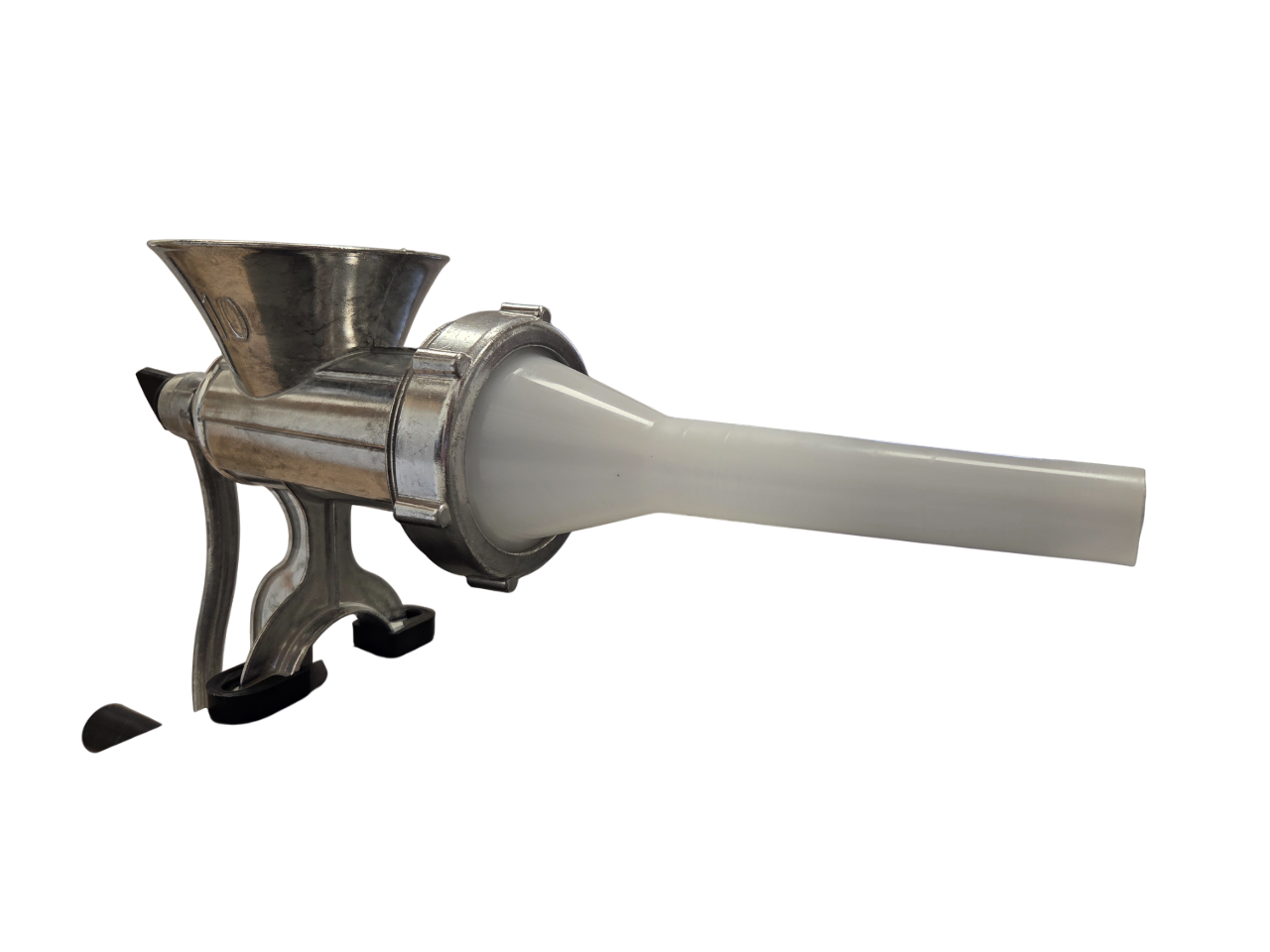 Kan naturligtvis även användas för att mala kött – och det medföljer 3 korvhorn/korvstosar tillverkade i vit plast.