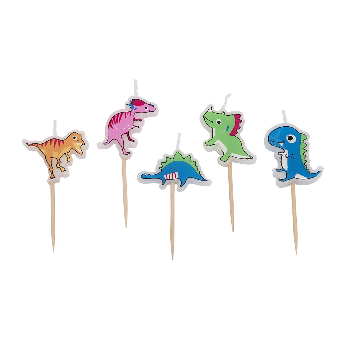 Ska du ha dinosauriekalas? Då är de här färgglada tårtljusen med dinotema ett måste! Perfekta för cupcakes där varje barn kan få ett eget ljus att blåsa ut – eller använd dem tillsammans på en stor födelsedagstårta för en festlig och färgglad look.
