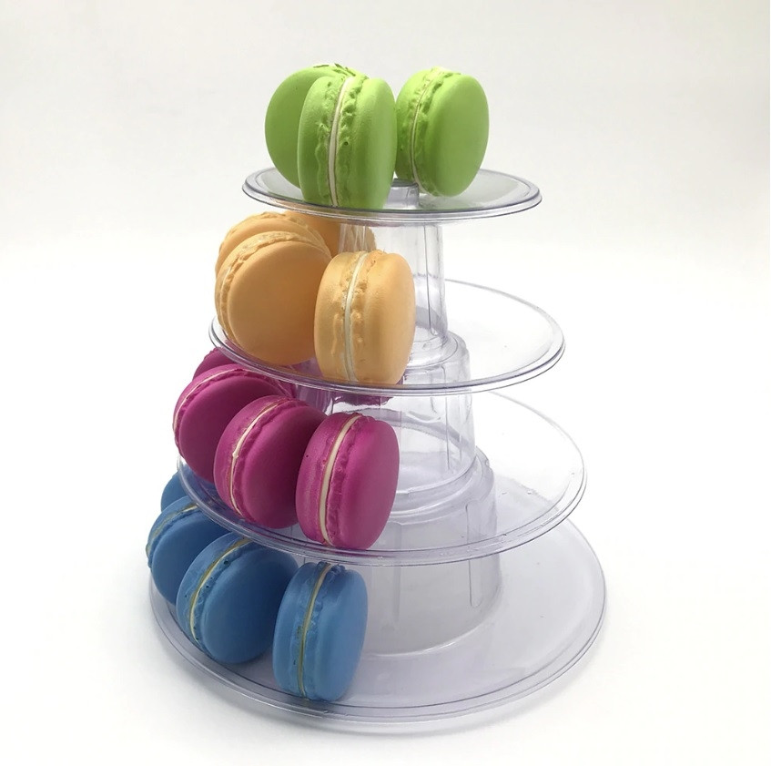 Presentera dina macarons på ett elegant och överskådligt sätt med detta fina stativ tillverkat i klar plast. Stativet har 4 våningar och plats för ca 45-48 macarons – perfekt för födelsedagar, bröllop, fester eller söta dessertbord.
