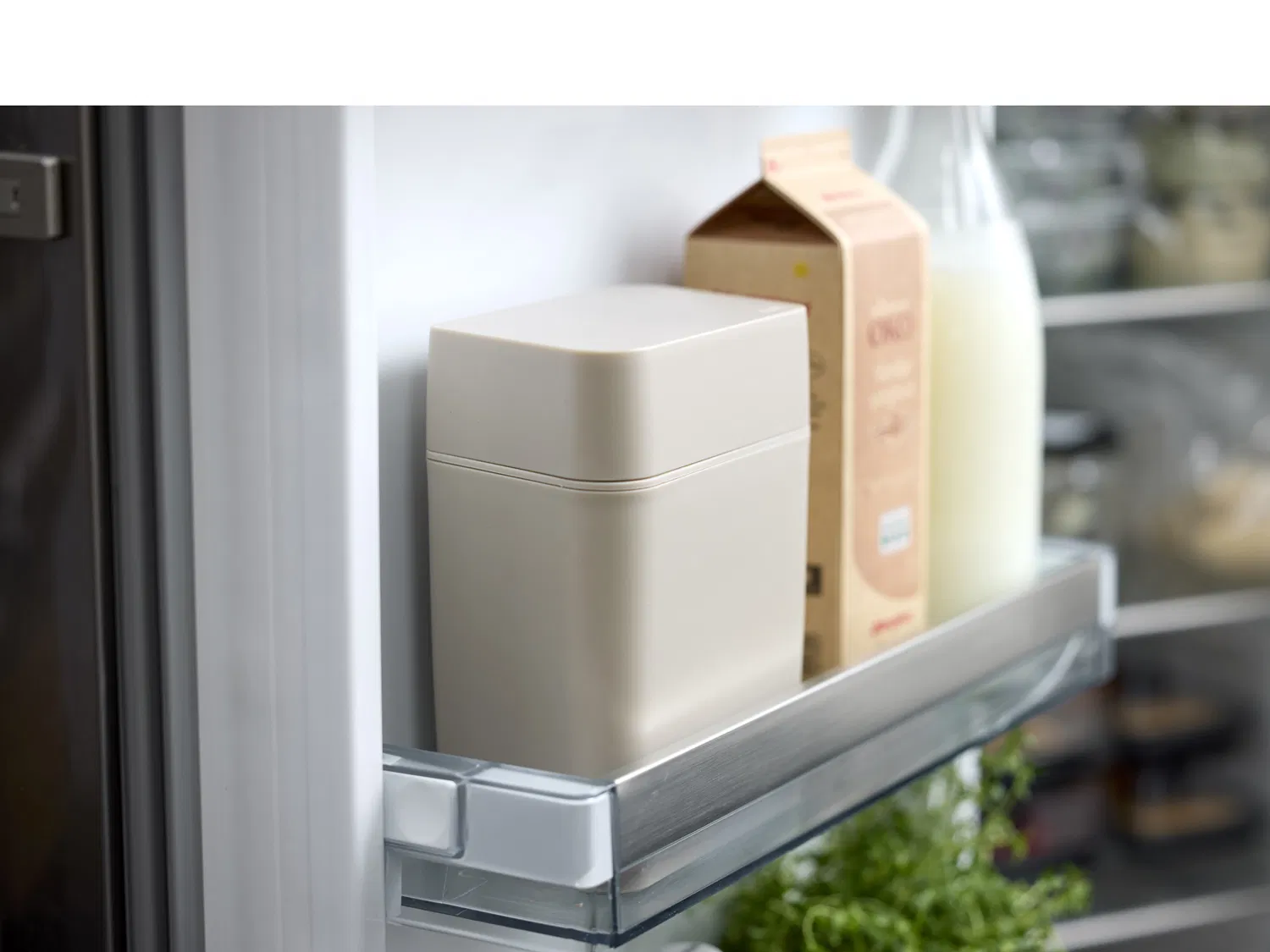Denna smarta ostbox kombinerar hygienisk förvaring med enkel servering. Tack vare den integrerade ostskäraren kan du skära skivor utan att röra vid osten – perfekt för både vardag och gäster.
