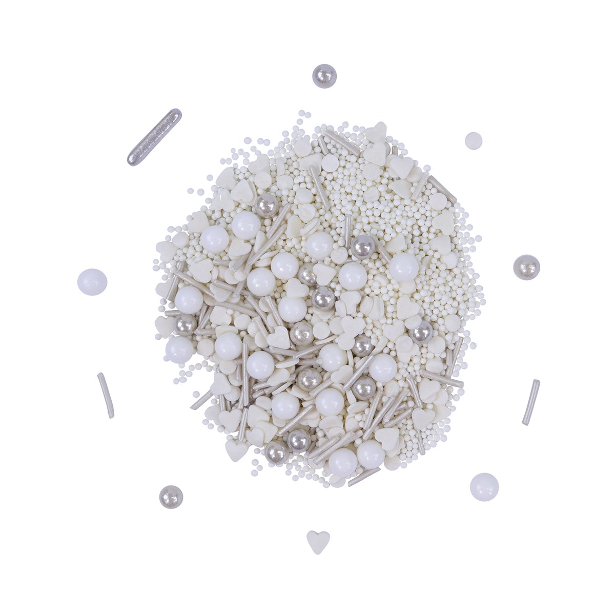 Gör dina tårtor eleganta och festklara med Out the Box Sprinkle Mix – White Wedding från PME. Denna raffinerade och eleganta mix är fylld med fina sockerfigurer och vita pärlemorskimrande färger – perfekt för bröllopstårtor, förlovningsdesserter och andra speciella tillfällen där det behövs lite extra skönhet.