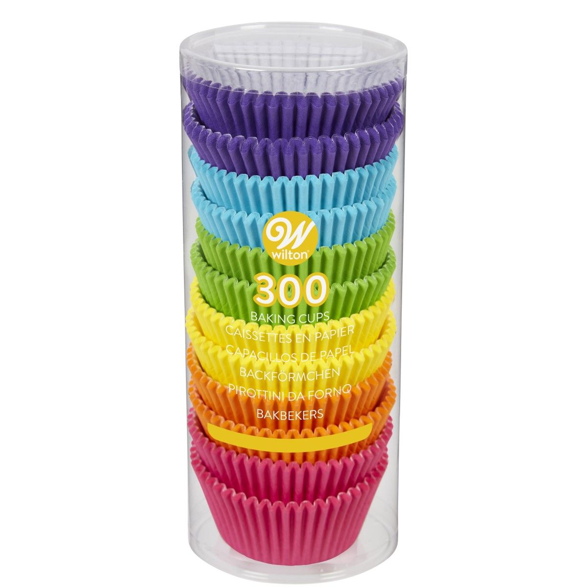 300 muffinsformar i regnbågsfärger från amerikanska Wilton – perfekt till födelsedagar och kalas.
