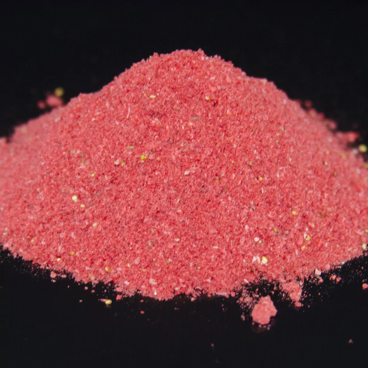 Vackert och intensivt vinbärspulver av frystorkat vinbär.