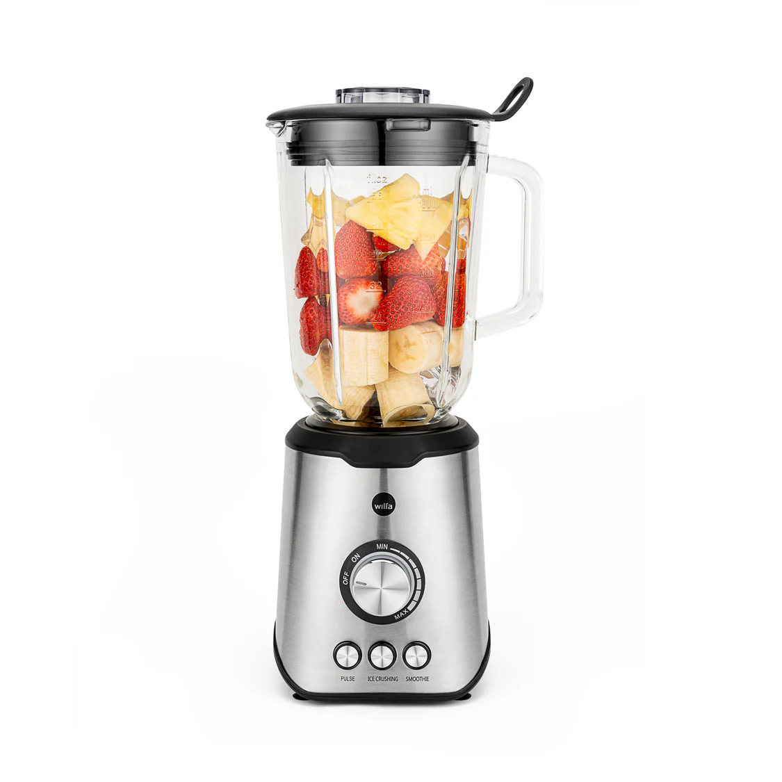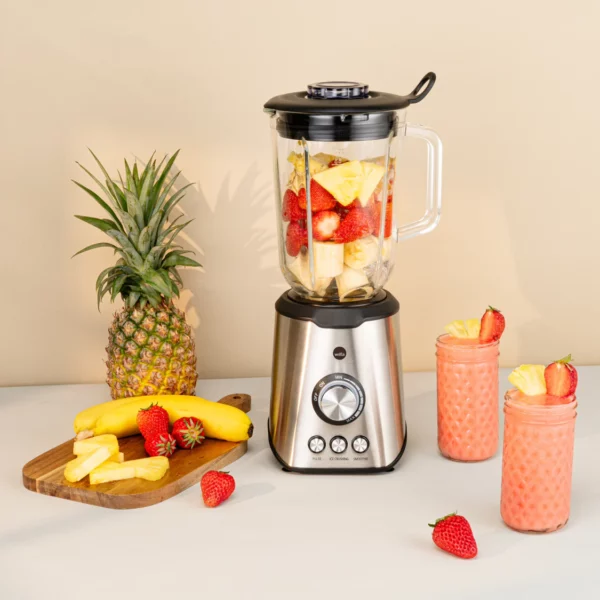 Gör din vardag enklare med Smooth Blender – den perfekta mixern för smoothies, drinkar, såser och mycket mer. Med en rymlig glaskanna på 1,5 liter och en motor på 1000 W är den perfekt för både vardagsbruk och mer krävande uppgifter som att krossa is och frysta bär.