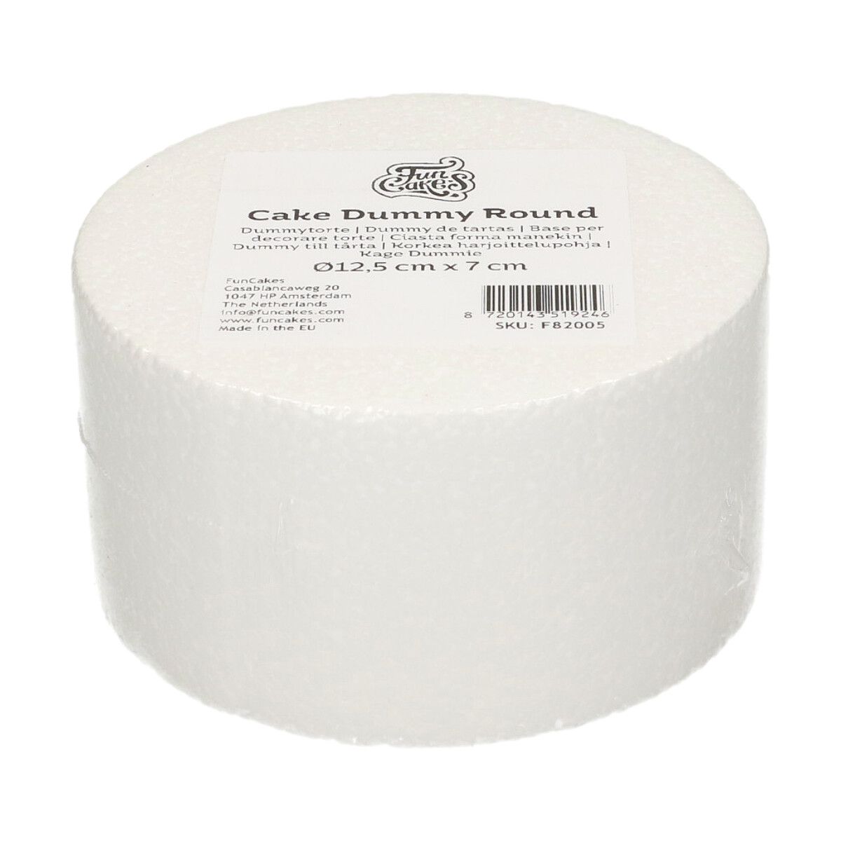 Cake Dummy finns i storlekarna Ø10 cm, Ø12,5 cm, Ø15 cm, Ø20 cm, Ø25 cm, Ø30 cm och en höjd på 7 cm.