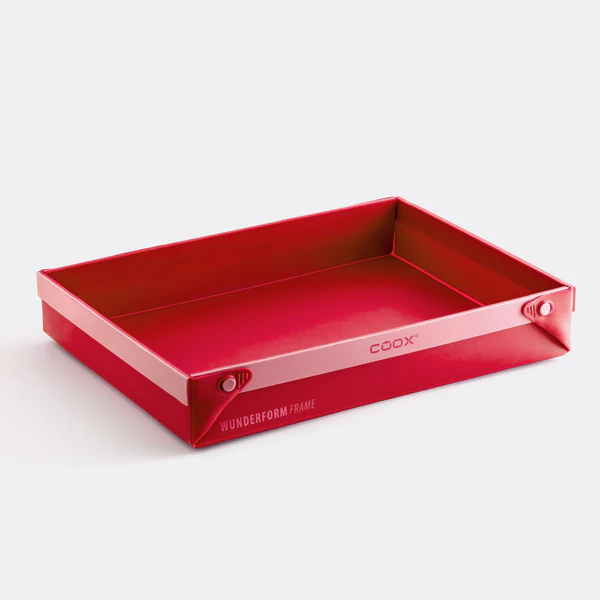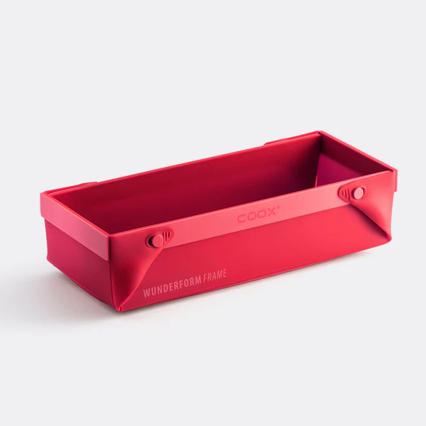 WUNDERFORM Frame SQ från coox är en fyrkantig, patenterad bakform som gör det enkelt att baka, skära och servera – utan att behöva vända ut kakan eller fatet. De smarta hörnen kan öppnas för direkt åtkomst till innehållet. Perfekt för allt från brownies och lasagne till glass, bröd och små ugnsrätter.